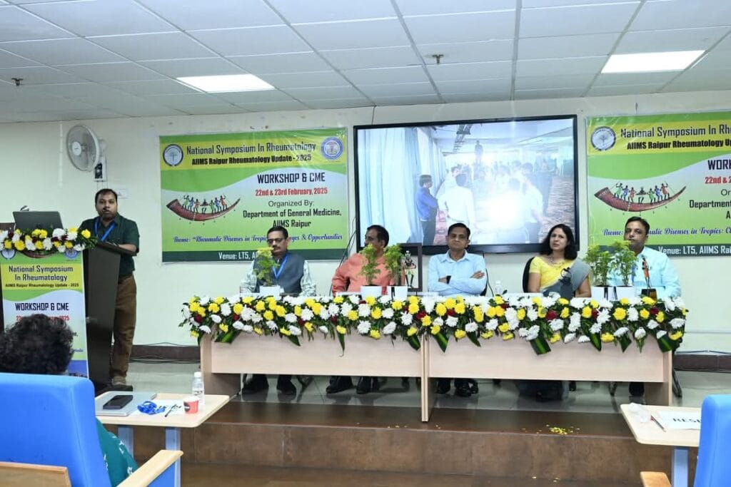 AIIMS रायपुर रुमेटोलॉजी अपडेट 2025 ने चिकित्सकों और विशेषज्ञों को एक मंच प्रदान किया, जहाँ उन्होंने ज्ञान साझा किया, गठिया रोगों के उपचार में नवीनतम तकनीकों पर चर्चा की, और क्षेत्र में रुमेटोलॉजी सेवाओं को और अधिक सुदृढ़ करने की दिशा में कदम बढ़ाए। इस सफल आयोजन से स्वास्थ्य सेवाओं तक पहुँच बढ़ाने और मरीजों के इलाज में सुधार लाने की दिशा में एक नया मील का पत्थर साबित होगा।