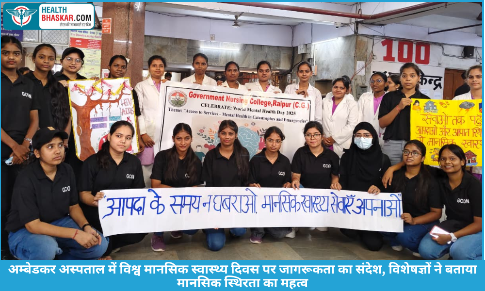 Healthbhaskar.com: रायपुर, 12 अक्टूबर 2025 विश्व मानसिक स्वास्थ्य दिवस के अवसर पर डॉ. भीमराव अम्बेडकर स्मृति चिकित्सालय एवं पंडित जवाहरलाल नेहरू स्मृति चिकित्सा महाविद्यालय के मनोरोग विभाग (Psychiatry Department) द्वारा एक प्रेरणादायक जागरूकता कार्यक्रम (Awareness Program) का आयोजन किया गया। इस कार्यक्रम का मुख्य उद्देश्य आम नागरिकों को मानसिक स्वास्थ्य के महत्व से जोड़ना और “मानसिक रोग” से जुड़ी सामाजिक भ्रांतियों को दूर करना था।