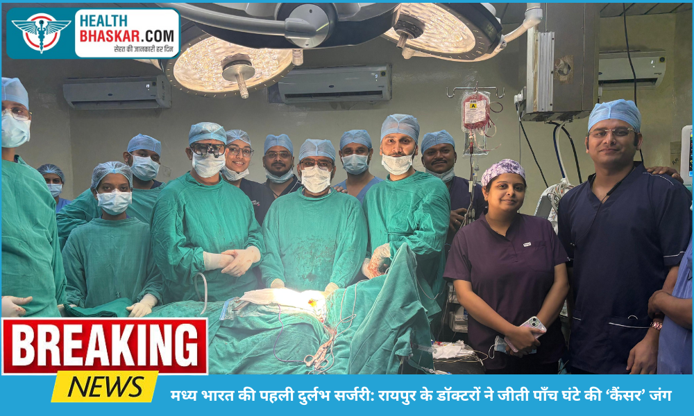 Healthbhaskar.com: रायपुर, 09 अक्टूबर 2025 पंडित जवाहरलाल नेहरू स्मृति चिकित्सा महाविद्यालय से संबद्ध डॉ. भीमराव अम्बेडकर स्मृति चिकित्सालय, रायपुर के विशेषज्ञ डॉक्टरों ने एक बार फिर से चिकित्सा क्षेत्र में असाधारण उपलब्धि दर्ज की है। 35 वर्षीय ओडिशा निवासी युवक के हृदय से चिपके 11×7 सेंटीमीटर के दुर्लभ कैंसरग्रस्त थाइमस ट्यूमर को पाँच घंटे की जटिल सर्जरी कर सफलतापूर्वक निकालकर उसे नई जिंदगी डॉ. भीमराव अम्बेडकर स्मृति चिकित्सालय के डॉक्टर्स द्वारा दी गयी है।