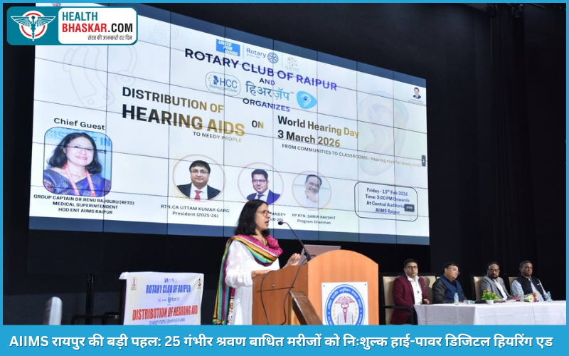 Healthbhaskar.com: रायपुर, 13 फरवरी 2026। ऑल इंडिया इंस्टीट्यूट ऑफ मेडिकल साइंसेज एम्स रायपुर ने एक बार फिर यह सिद्ध कर दिया कि आधुनिक चिकित्सा केवल इलाज तक सीमित नहीं, बल्कि समाज के कमजोर वर्गों को सशक्त बनाने का सशक्त माध्यम भी है। इसी उद्देश्य को साकार करते हुए एम्स रायपुर द्वारा फ्री हियरिंग एड वितरण कार्यक्रम का भव्य आयोजन केंद्रीय डोम ऑडिटोरियम में किया गया। यह कार्यक्रम रोटरी क्लब ऑफ रायपुर और हिअरजैप हिअरिंग केयर सेंटर के सहयोग से संपन्न हुआ।