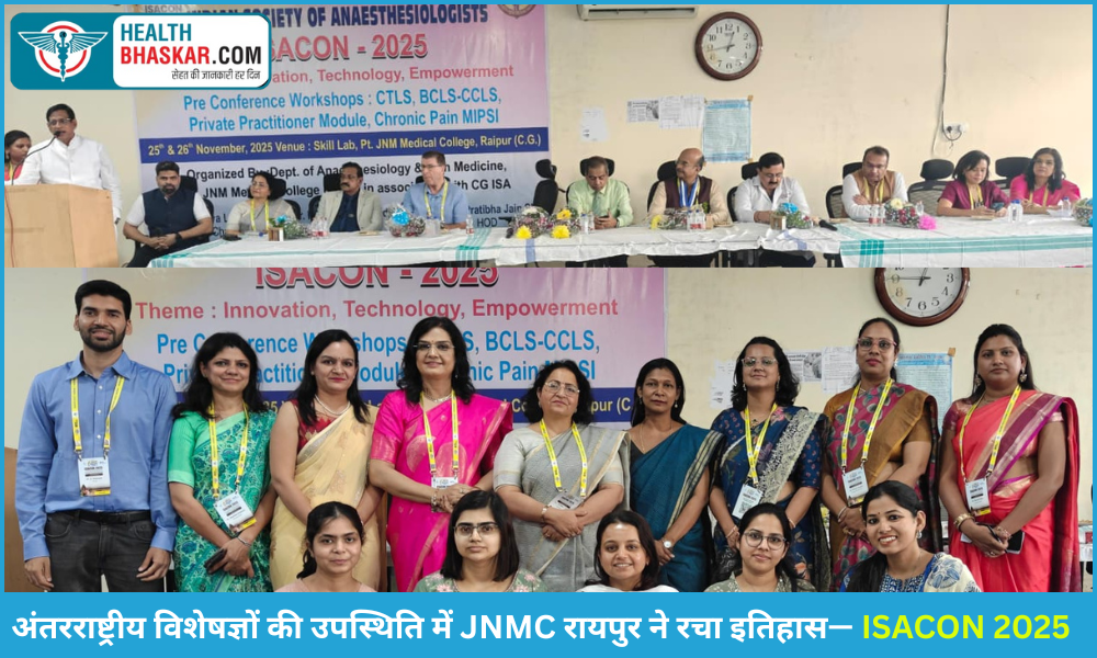 Healthbhaskar.com: रायपुर, 26 नवंबर 2025 पं. जवाहर लाल नेहरू मेडिकल कॉलेज (JNMC), रायपुर में 25 एवं 26 नवंबर 2025 को इंडियन सोसायटी ऑफ एनेस्थिसियोलॉजिस्ट (ISA) के 72वें राष्ट्रीय सम्मेलन (ISACON 2025) का सफलतापूर्वक आयोजन किया गया। इस अंतर्राष्ट्रीय सम्मेलन का मुख्य उद्देश्य एनेस्थिसियोलॉजी, क्रॉनिक पेन मैनेजमेंट और क्रिटिकल केयर के क्षेत्र में नवीनतम ज्ञान और तकनीक का आदान-प्रदान करना था।