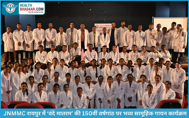 Healthbhaskar.com: रायपुर 15 जनवरी , 2026। पं. जवाहरलाल नेहरू मेमोरियल मेडिकल कॉलेज JNMMC, रायपुर द्वारा भारत के राष्ट्रीय गीत ‘वंदे मातरम’ की 150वीं वर्षगांठ के अवसर पर एक भव्य सामूहिक गीत कार्यक्रम का आयोजन किया गया। यह कार्यक्रम श्री अटल बिहारी वाजपेयी ऑडिटोरियम में दोपहर 12:55 बजे संपन्न हुआ।