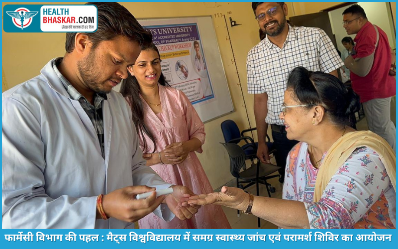 Healthbhaskar.com: रायपुर 10 फरवरी 2026। मैट्स स्कूल ऑफ फार्मेसी द्वारा विश्वविद्यालय परिसर में चिकित्सा स्वास्थ्य शिविर का सफल आयोजन किया गया। इस शिविर का प्रमुख उद्देश्य संकाय सदस्यों, गैर-शिक्षण कर्मचारियों एवं विद्यार्थियों के बीच स्वास्थ्य देखभाल करना था। रोग-निवारण तथा समग्र कल्याण को बढ़ावा देने हेतु शिविर में बड़ी संख्या में प्रतिभागियों ने उत्साहपूर्वक सहभागिता कर स्वास्थ्य सेवाओं का लाभ उठाया गया।