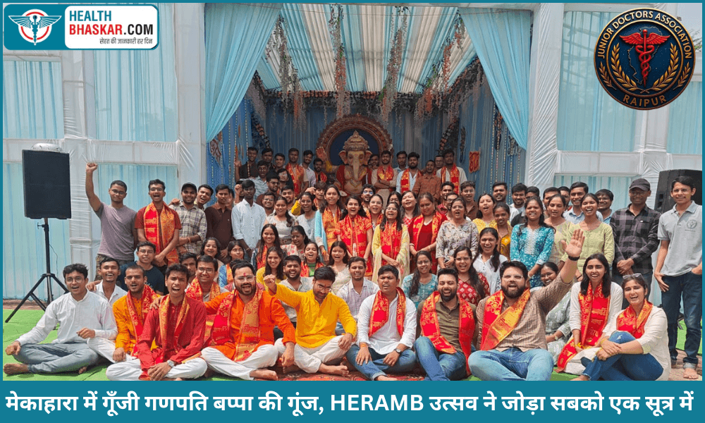 Healthbhaskar.com: रायपुर,29 अगस्त 2025 पं. जवाहरलाल नेहरू स्मृति चिकित्सा महाविद्यालय एवं डॉ. भीमराव अंबेडकर स्मृति चिकित्सालय (MEKAHARA) में इस वर्ष गणपति बप्पा का आगमन हर्ष, उल्लास और भक्ति के साथ हुआ। हर वर्ष की भांति इस बार भी जूनियर डॉक्टरों और विद्यार्थियों ने मिलकर गणेश स्थापना को विशेष रूप दिया है। आयोजन को इस बार एक अनूठा नाम दिया गया है “HERAMB” जिसका अर्थ है “सबके रक्षक, सबको सुख देने वाले ” गणपति की प्रतिमा की स्थापना के साथ ही पूरा परिसर भक्ति, संगीत और उमंग से सराबोर हो गया। छात्रों ने इसे केवल धार्मिक उत्सव नहीं, बल्कि परिवार की तरह मनाया जाने वाला पर्व बताया।