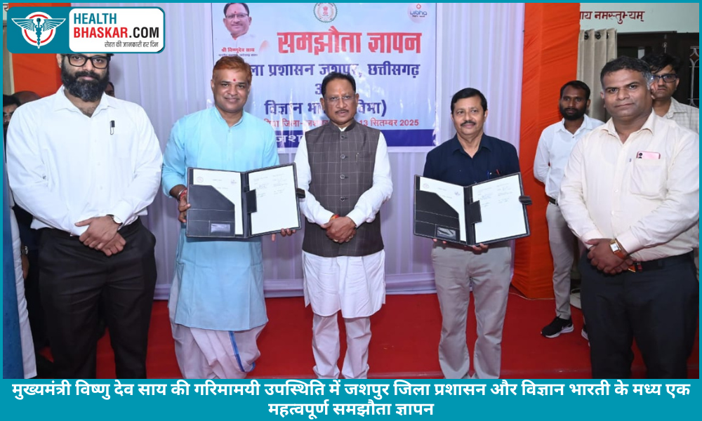 Healthbhaskar.com: रायपुर, 17 सितम्बर 2025 मुख्यमंत्री विष्णु देव साय की गरिमामयी उपस्थिति में जशपुर जिला प्रशासन और विज्ञान भारती के मध्य एक महत्वपूर्ण समझौता ज्ञापन (MoU) पर हस्ताक्षर किए गए। इस समझौते का मुख्य उद्देश्य विद्यार्थियों में वैज्ञानिक दृष्टिकोण का विकास करना और उन्हें विज्ञान एवं प्रौद्योगिकी से जोड़ना है।
