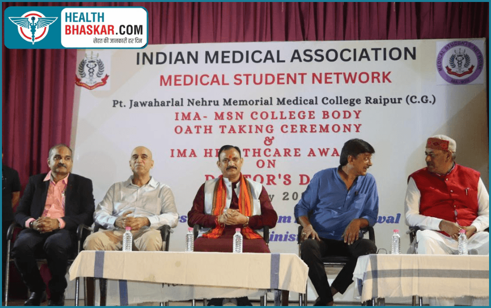 हेल्थ भास्कर: रायपुर ,राष्ट्रीय डॉक्टर्स डे के शुभ अवसर पर इंडियन मेडिकल एसोसिएशन एवं मेडिकल स्टूडेंट्स नेटवर्क (IMA-MSN) द्वारा पंडित जवाहरलाल नेहरू मेमोरियल मेडिकल कॉलेज, रायपुर में एक भव्य समारोह का आयोजन किया गया, जिसमें IMA-MSN कॉलेज बॉडी (2025–2026) का शपथ ग्रहण एवं IMA हेल्थकेयर अवॉर्ड्स का वितरण हुआ।