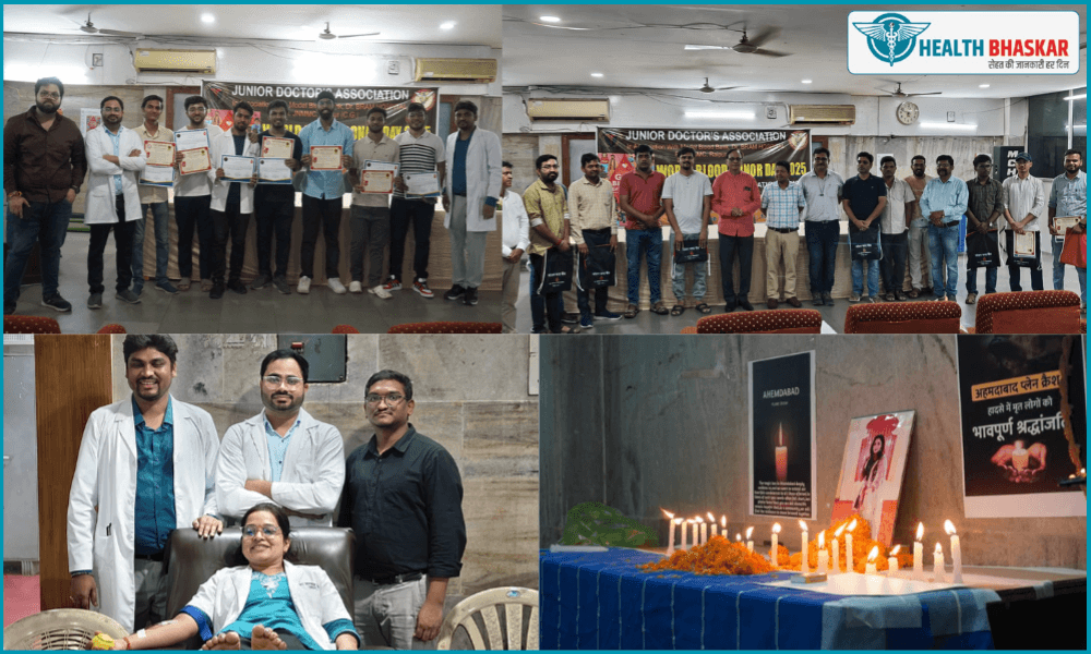 JDA जूनियर डॉक्टर् एसोसिएशन रायपुर द्वारा विश्व रक्तदाता दिवस पर भव्य रक्तदान शिविर एवं श्रद्धांजलि सभा का आयोजन