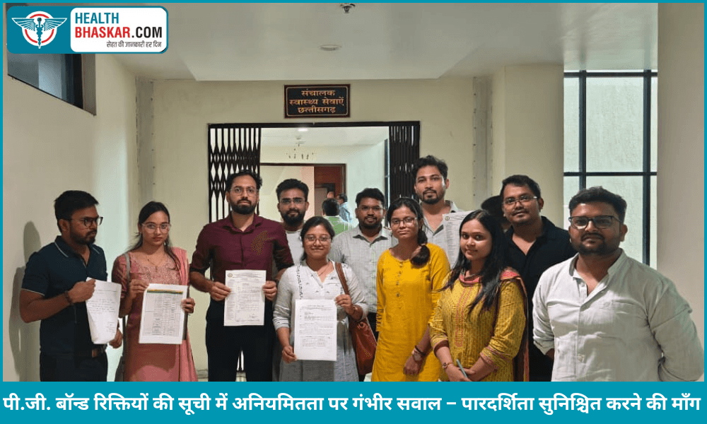 Healthbhaskar.com: रायपुर,21 अगस्त 2025 छत्तीसगढ़ की स्वास्थ्य सेवाओं में एक बार फिर पारदर्शिता और निष्पक्षता पर सवाल खड़े हो गए हैं। जूनियर डॉक्टर्स एसोसिएशन (JDA), छत्तीसगढ़ ने चिकित्सा शिक्षा विभाग द्वारा हाल ही में जारी पी.जी. बॉन्ड रिक्त पदों की सूची में गंभीर अनियमितताओं का आरोप लगाया है। इस मुद्दे ने न केवल चिकित्सा जगत बल्कि आम जनता के बीच भी गहन चर्चा छेड़ दी है।