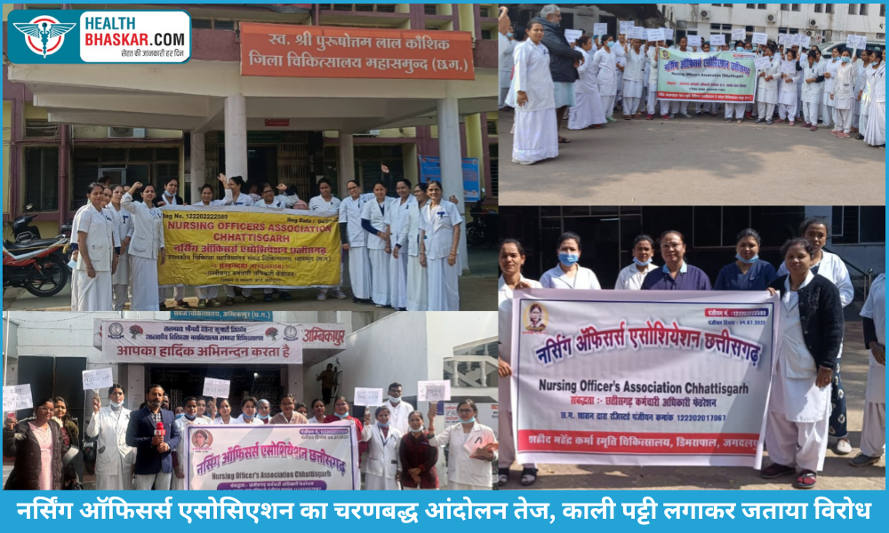 नर्सिंग ऑफिसर्स एसोसिएशन छत्तीसगढ़ का चरणबद्ध आंदोलन जारी, तीसरे चरण के दूसरे दिन काली पट्टी लगाकर जताया विरोध