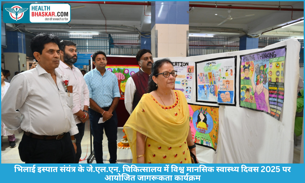 Healthbhaskar.com: भिलाई, 12 अक्टूबर 2025 विश्व मानसिक स्वास्थ्य दिवस 2025 के अवसर पर भिलाई इस्पात संयंत्र के मुख्य चिकित्सालय जवाहरलाल नेहरू चिकित्सालय एवं अनुसंधान केंद्र, सेक्टर-9 में शुक्रवार को मनोरोग विभाग की ओर से जनजागरूकता कार्यक्रम एवं पोस्टर प्रदर्शनी का आयोजन किया गया। इस कार्यक्रम का उद्देश्य समाज के विभिन्न वर्गों में मानसिक स्वास्थ्य के महत्व को रेखांकित करना और सकारात्मक जीवनशैली को बढ़ावा देना था।